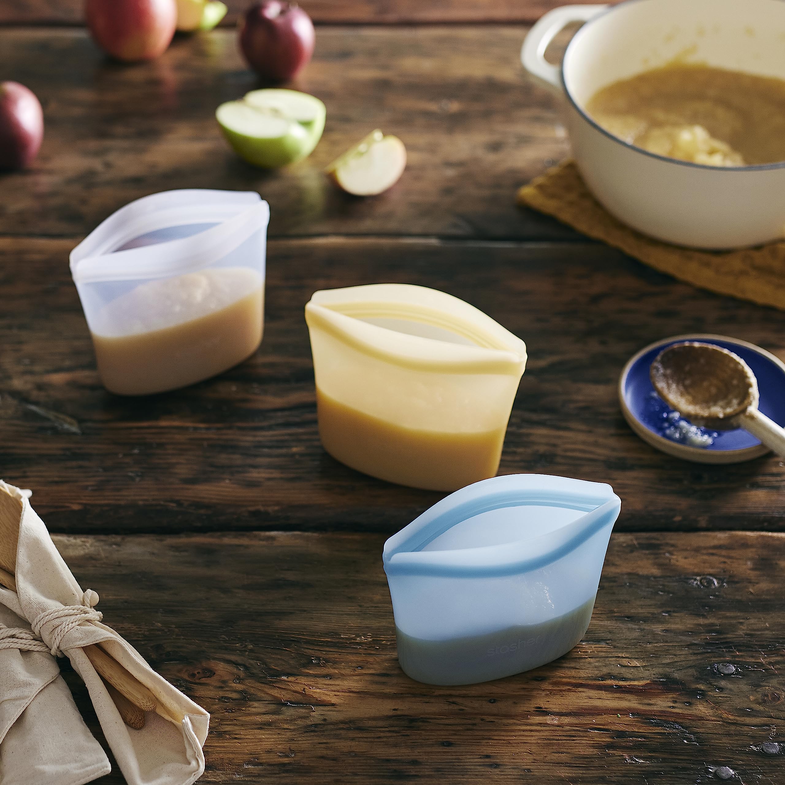 Stasher Silicone Reusable Storage Bag, 1-Cup Bowl, Reusable Freezer Bag, Microwave, Dishwasher, Oven Safe, Sous Vide, Premium Lunch Container, Eco Friendly, Food Storage Bag, Snack Bag, 8 oz, Clear | Reusable Food Bag